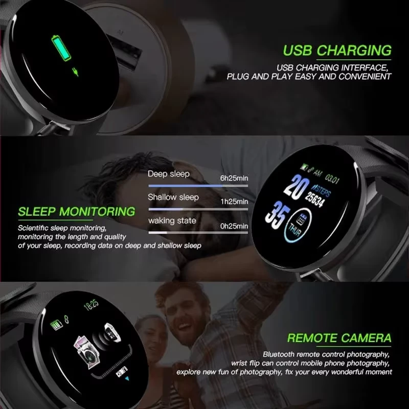 2025 New D18 Multifunctional Smart Watch Men & Women Bluetooth Connected Phone Music Fitness Sports Bracelet Sleep Monitor watch