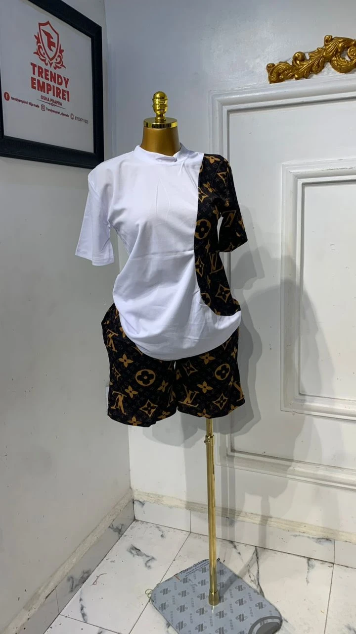 2025 New Summer Casual Printed Set Round Neck Short Sleeve T-Shirt and Shorts
