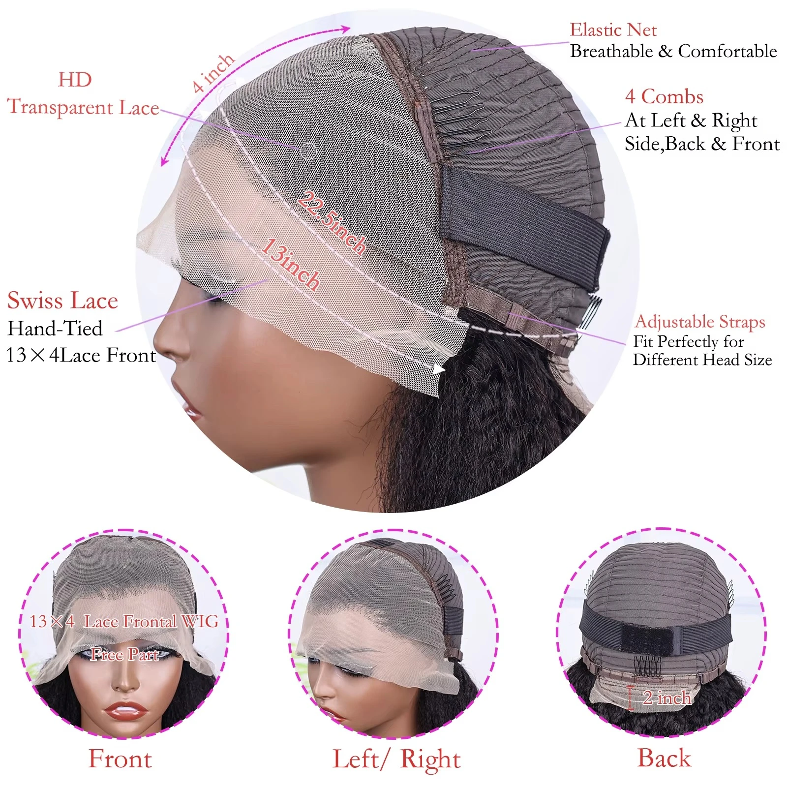 Kinky Straight Short 200 Density Bob Wig Human Hair Peruvian 13x4 Full Lace Frontal Wig For Women Yaki Straight Lace Front Wigs