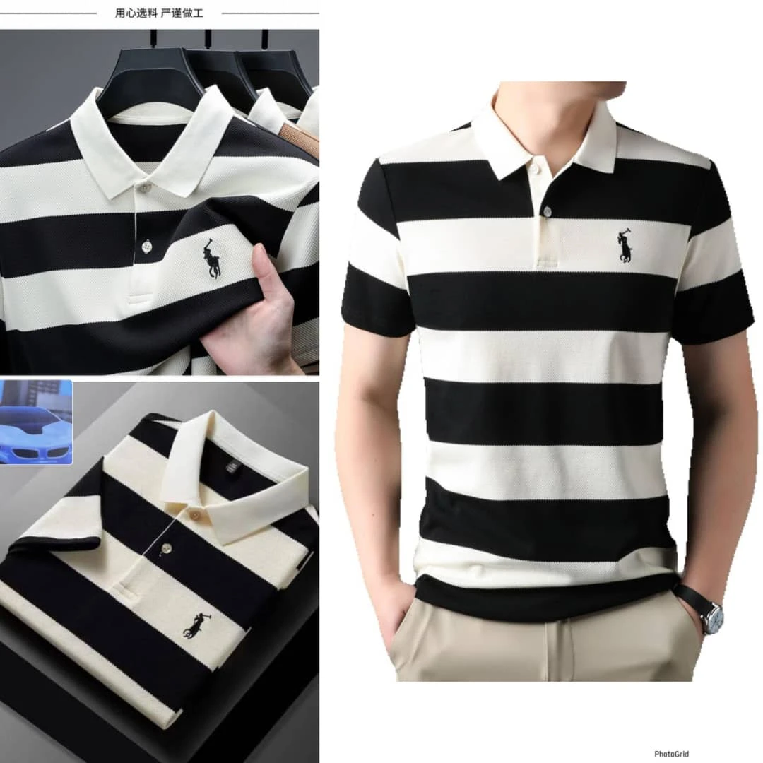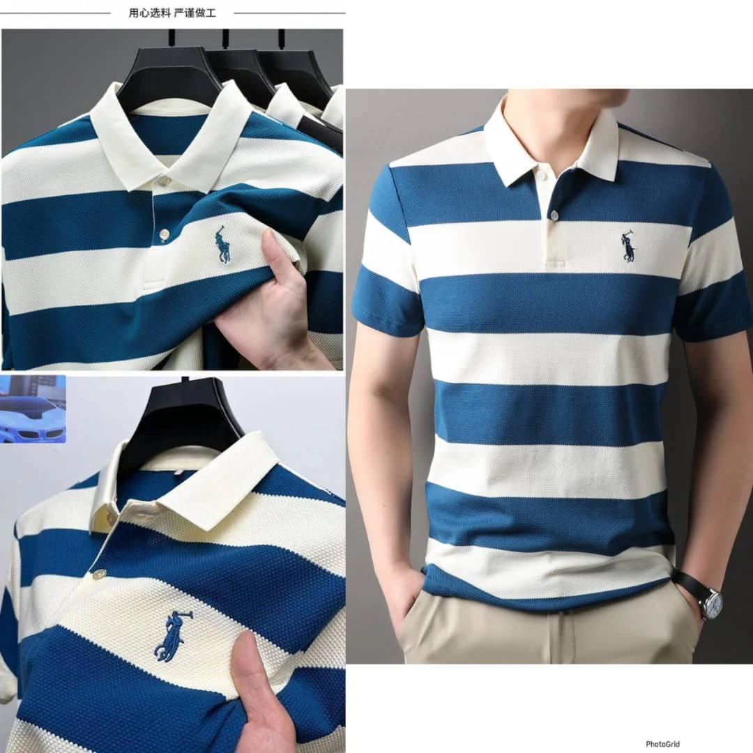 ummer New Men's Polo Shirt Casual High Business Breathable Iron-Free Short Sleeve Striped T-Shirt Male Comfortable Fit Tee
