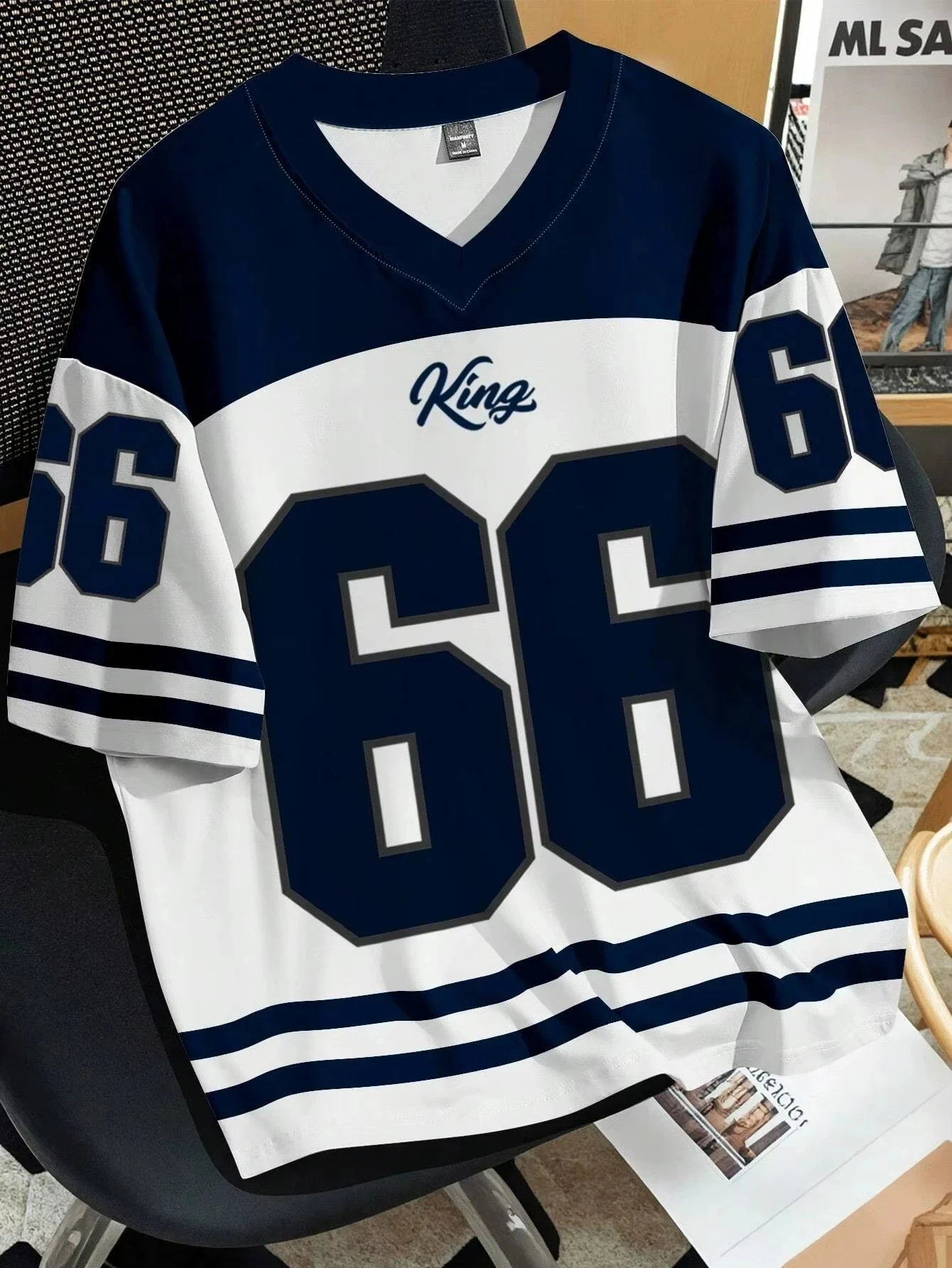 V-neck men's casual T-shirt Chicago letter-printed polyester pullover summer daily outdoor street wear clothes