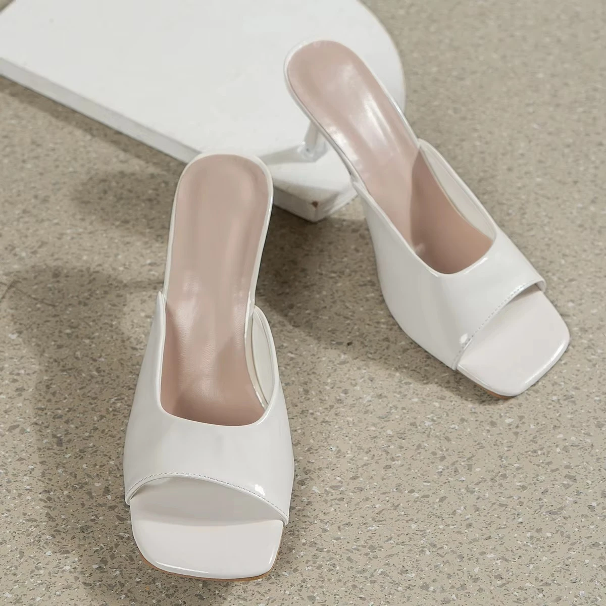 A pair with black leather (or faux leather) upper, square toe front, open toe-strap design, a block heel or slim heel (depending on your preference)