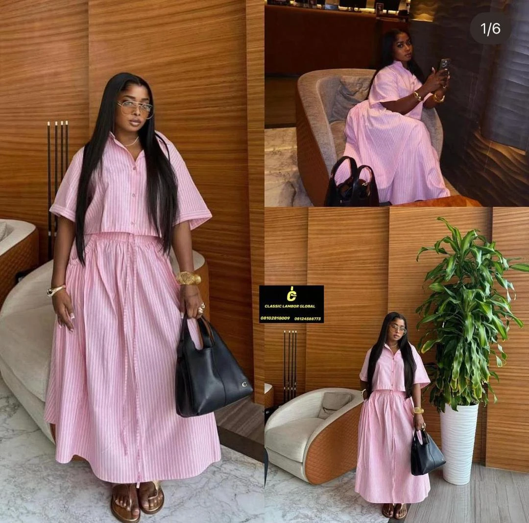 Women Two Pieces Dress Sets Striped Matching Sets Button Short Sleeves Shirt Tie Front Elastic Waist Skirts Loose 2025 Summer