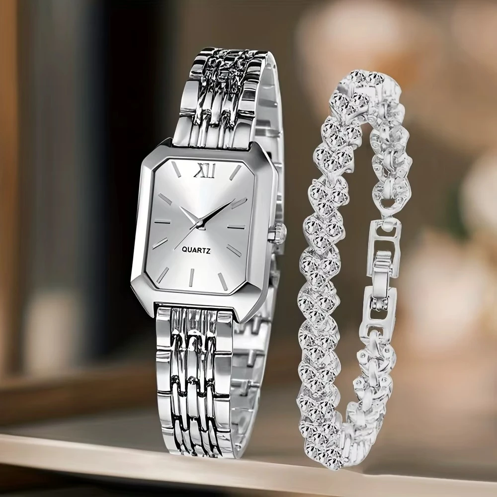 2-Piece Set: Includes a stylish wristwatch + matching rhinestone bracelet for a coordinated look