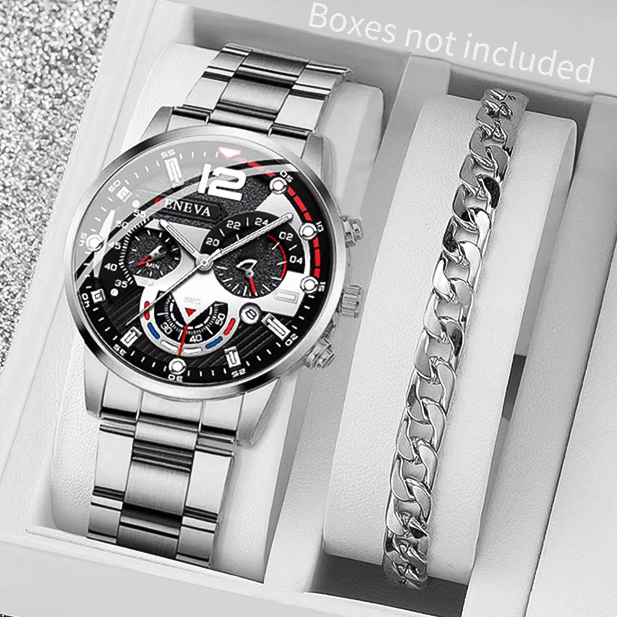 2PCS Men Business Watches Fashion Steel Band Male Analog Quartz Watch Bracelet Set Relogio Masculino Reloj Hombre(Without Box)