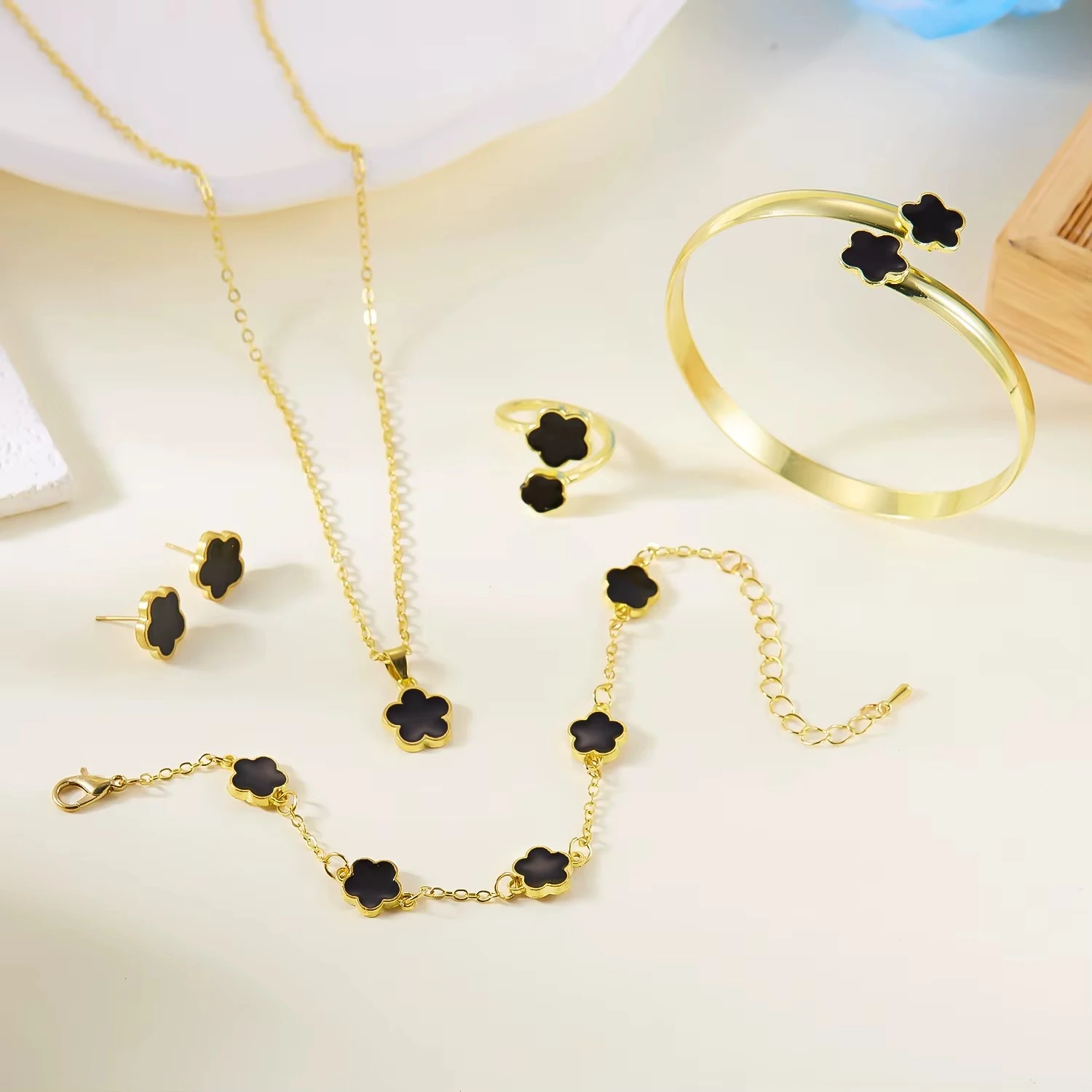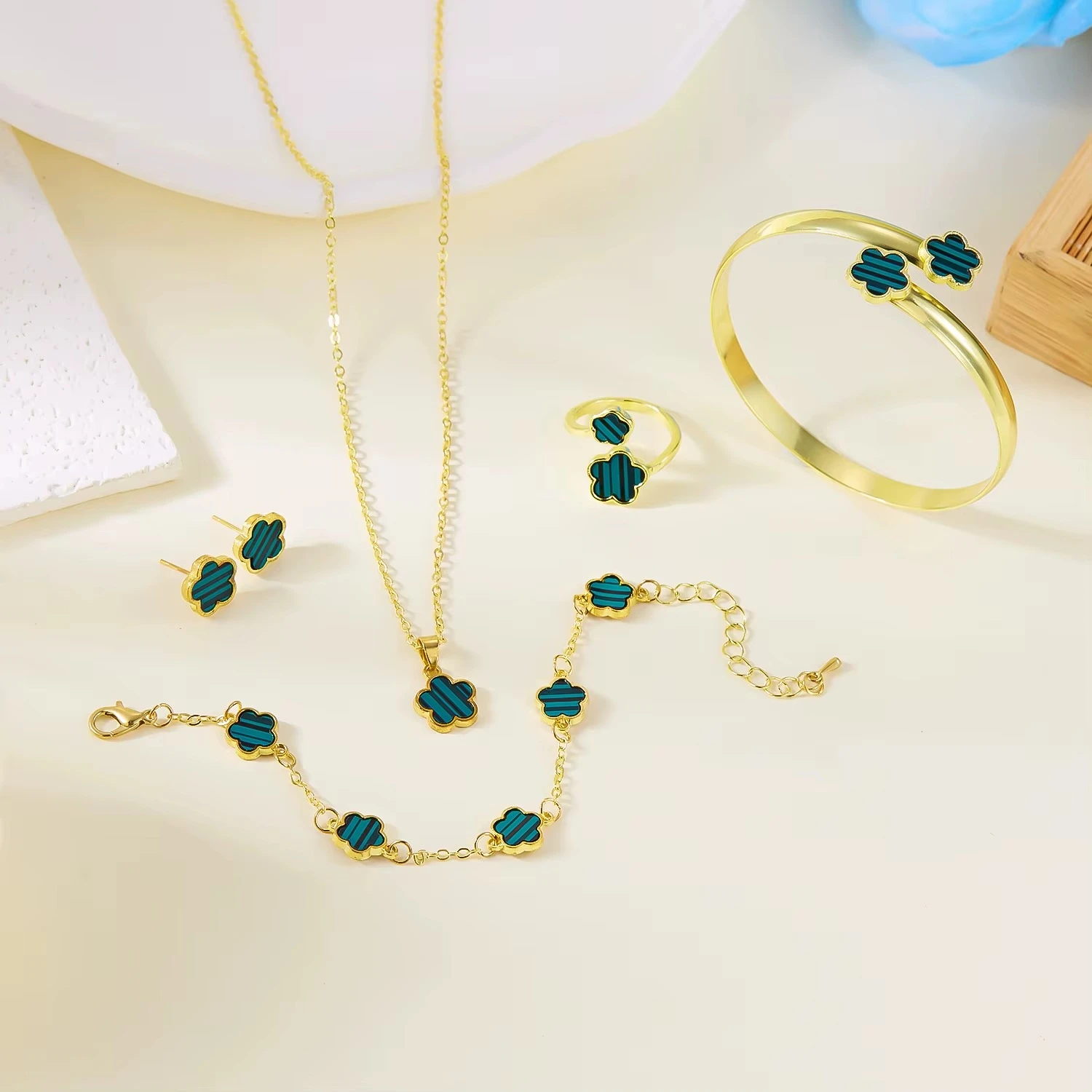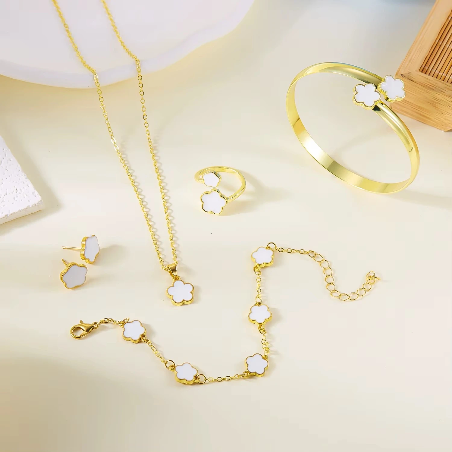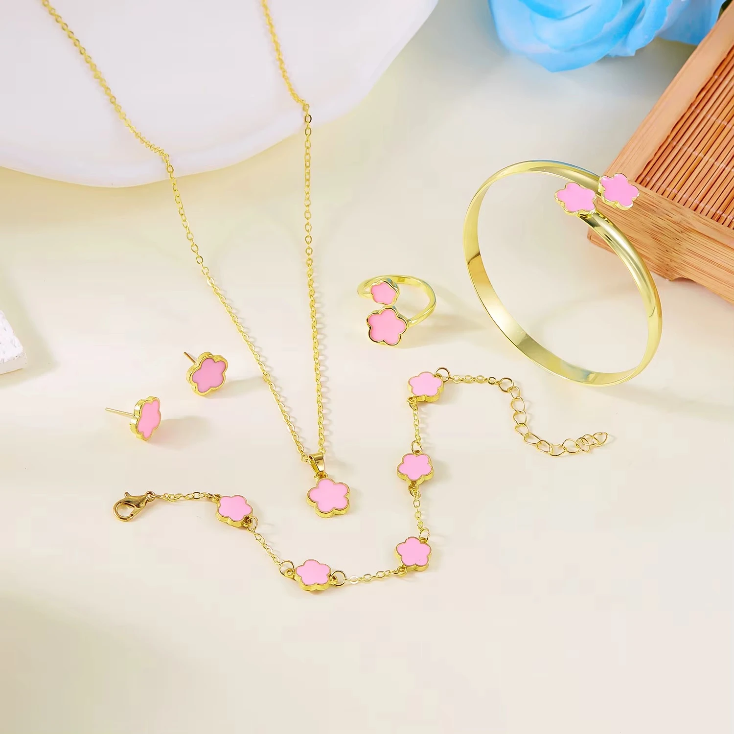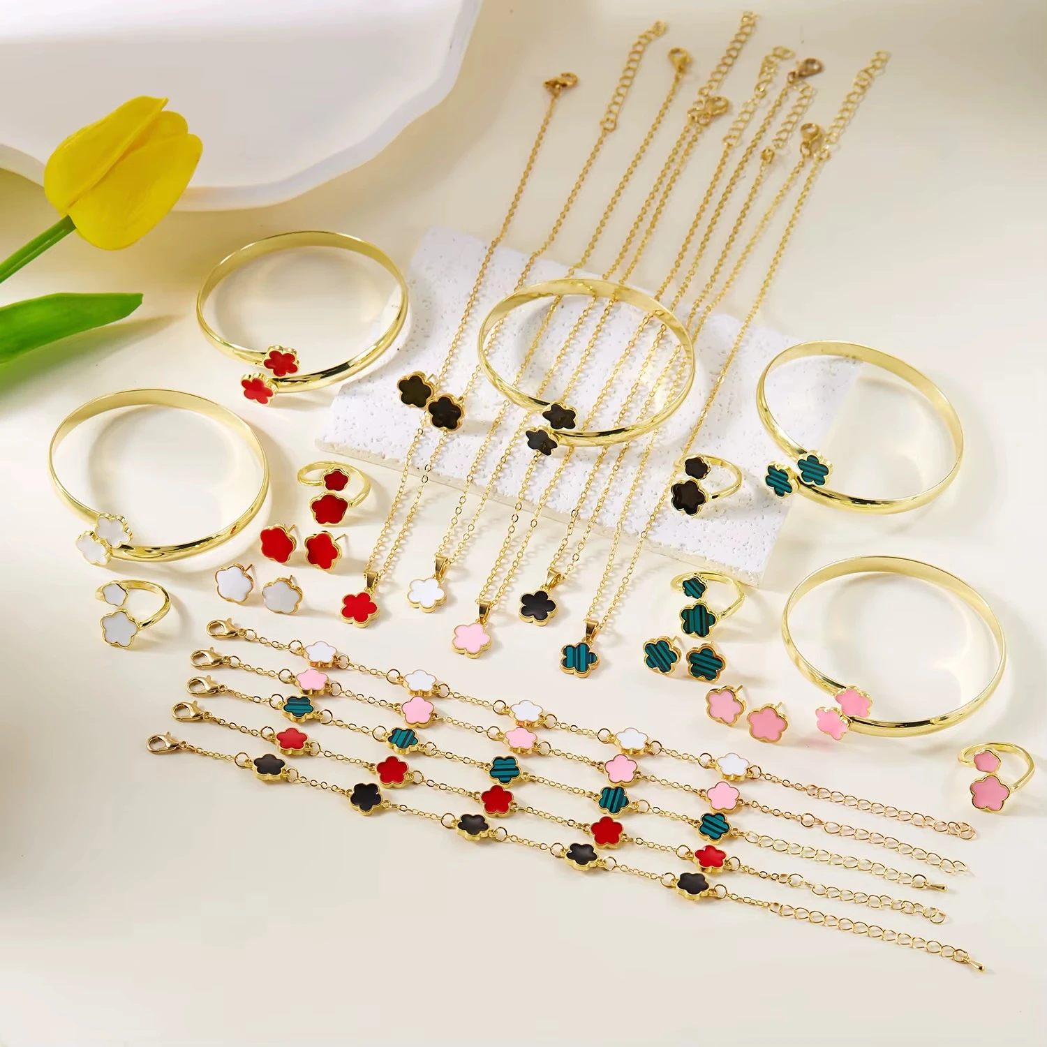 5pcs/set Colorful Enamel Plum Blossom Bracelets for Women Lucky Five Leaf Flower Necklace Earring Elegance Party Jewelry Gifts