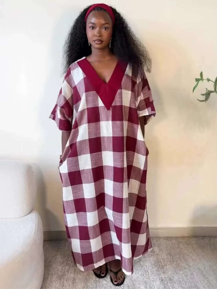 Dresses for Women Wholesale V Neck Loose and Lady Back Style Deep Long Striped Dress Long Dress for Women New Style 2025