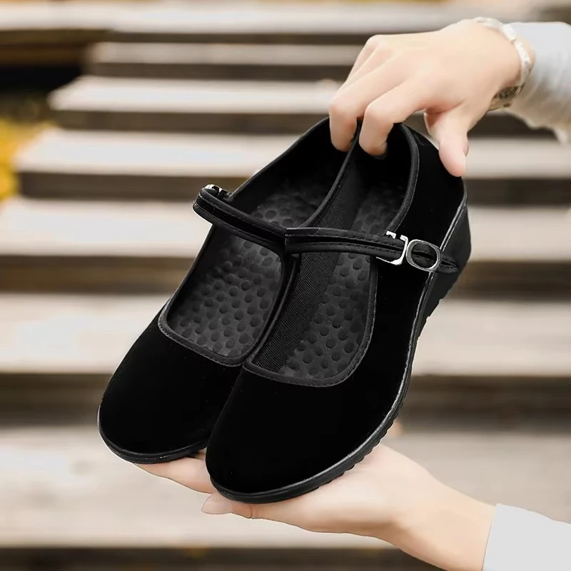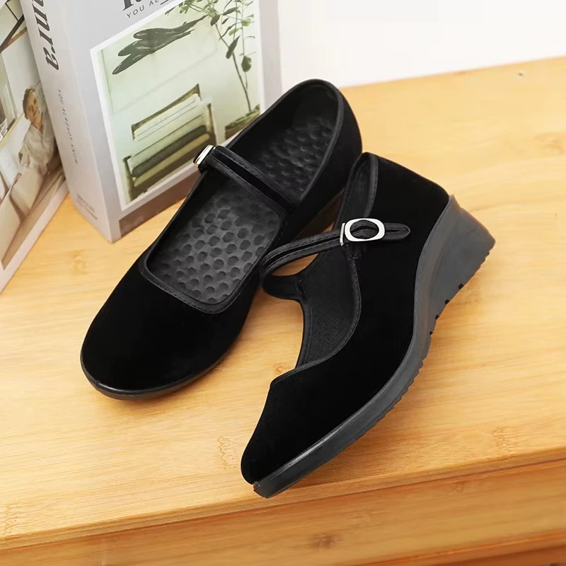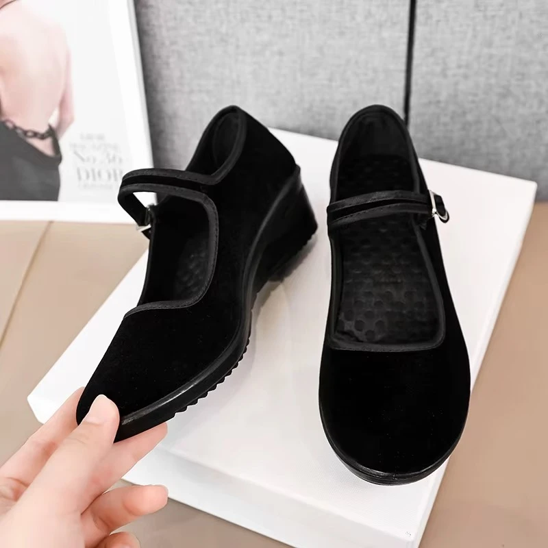 The shoes feature a timeless round toe for a comfortable, roomy fit, complemented by a chic V-shaped side design that adds sophistication and elegance to any outfit.