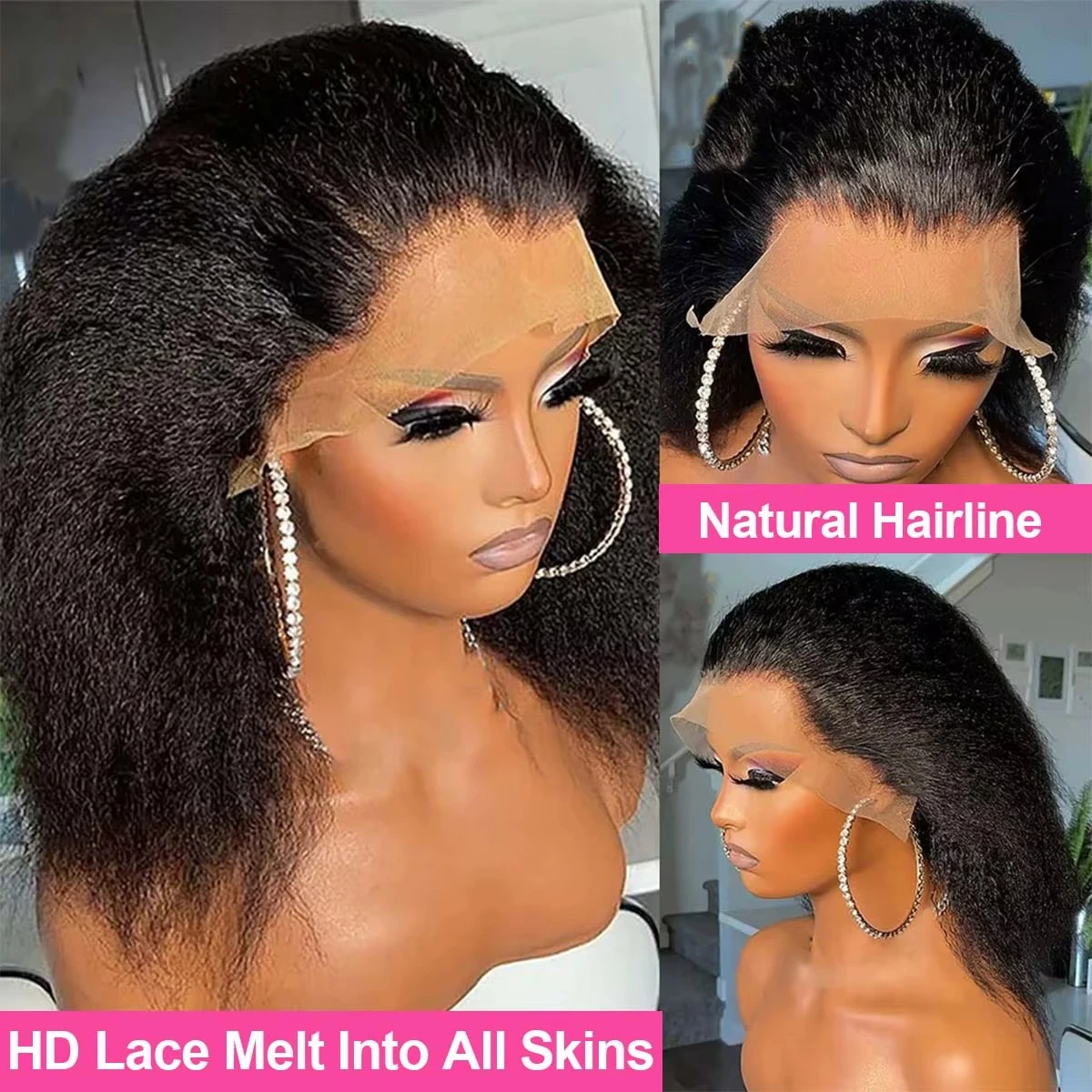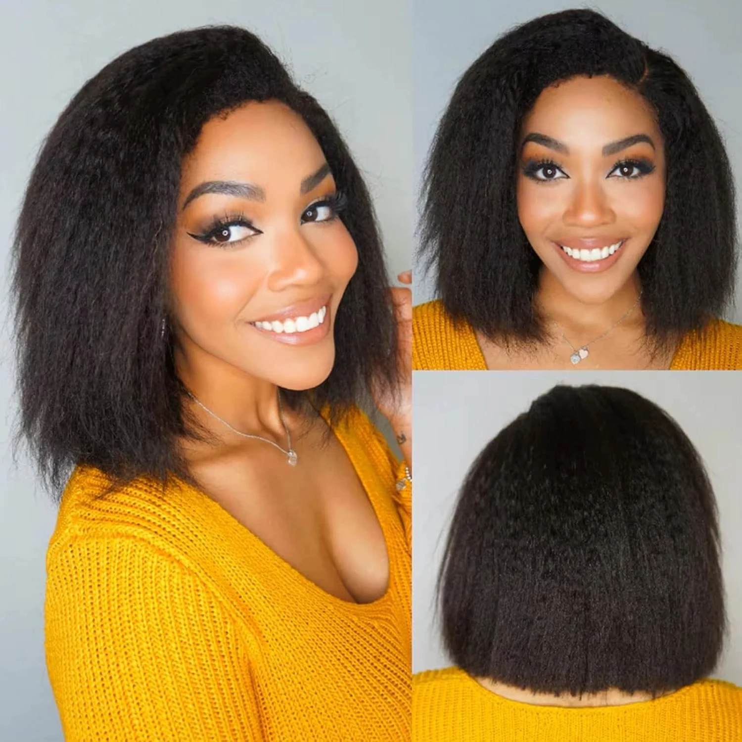 Kinky Straight Short 200 Density Bob Wig Human Hair Peruvian 13x4 Full Lace Frontal Wig For Women Yaki Straight Lace Front Wigs