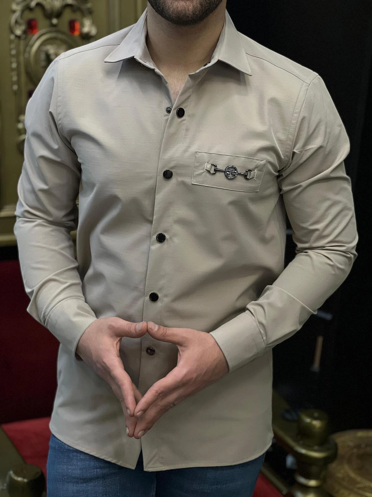 Men's Dark Business Long Sleeve Shirt Knight Pattern Printed Shirt
