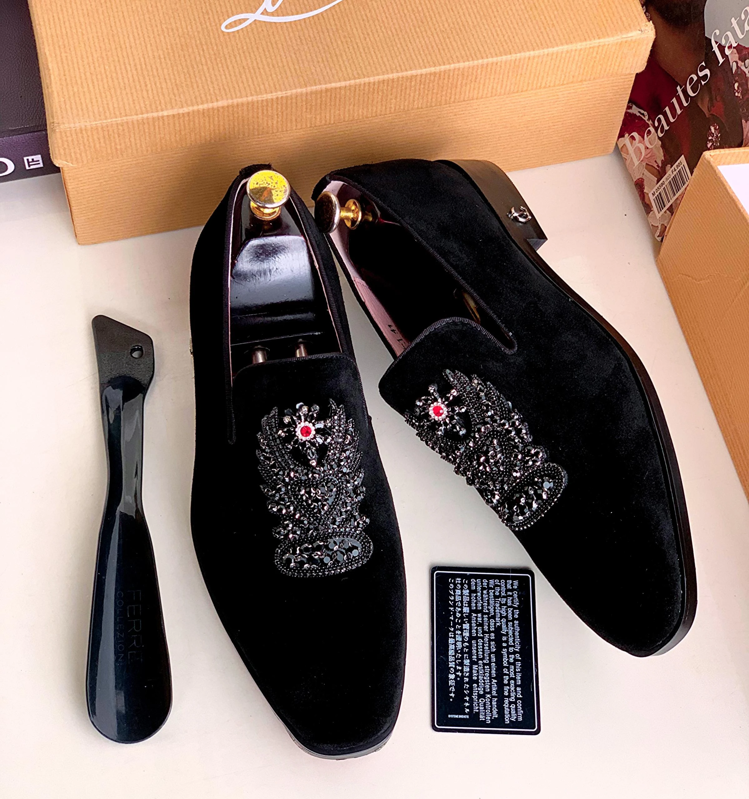 Men's Fashion Suede Leather Embroidery Loafers Mens Casual Printed Moccasins Oxfords Shoes Man Party Driving Flats EU