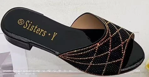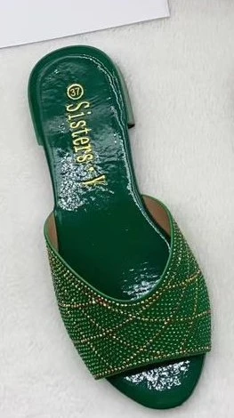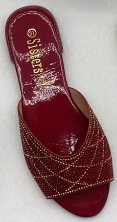 Peep-Toe Rhinestone Slippers Glitter Rhinestone Slip-On Slippers Summer Casual Shoes Party Sandas F5-710-1