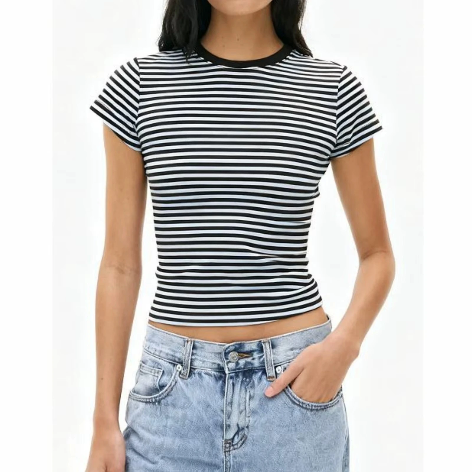 Sexy Women T Shirts E Girl Grunge Clothes Striped Round Neck Short Sleeve Tee Crop Tops y2k Aesthetic Clothing Daily Wear
