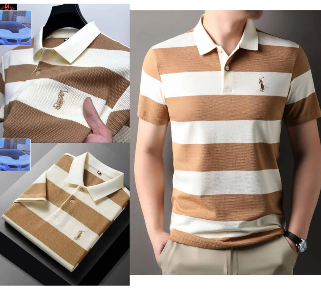 ummer New Men's Polo Shirt Casual High Business Breathable Iron-Free Short Sleeve Striped T-Shirt Male Comfortable Fit Tee